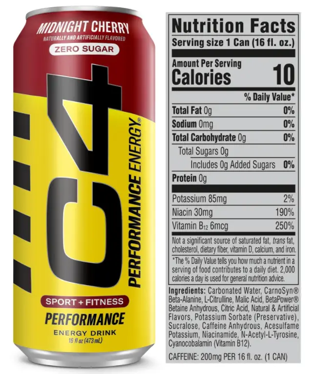 C4 Original Energy Drink Midnight Cherry Flavor - sugar free, artificial colors free, artificial dyes free