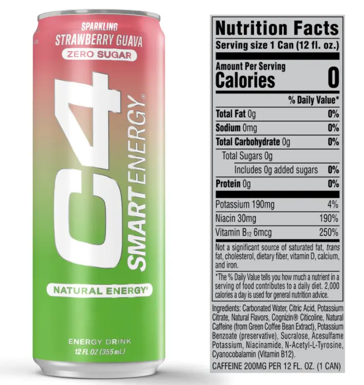 C4 Smart Energy Drink Strawberry & Guava Flavor - sugar free
